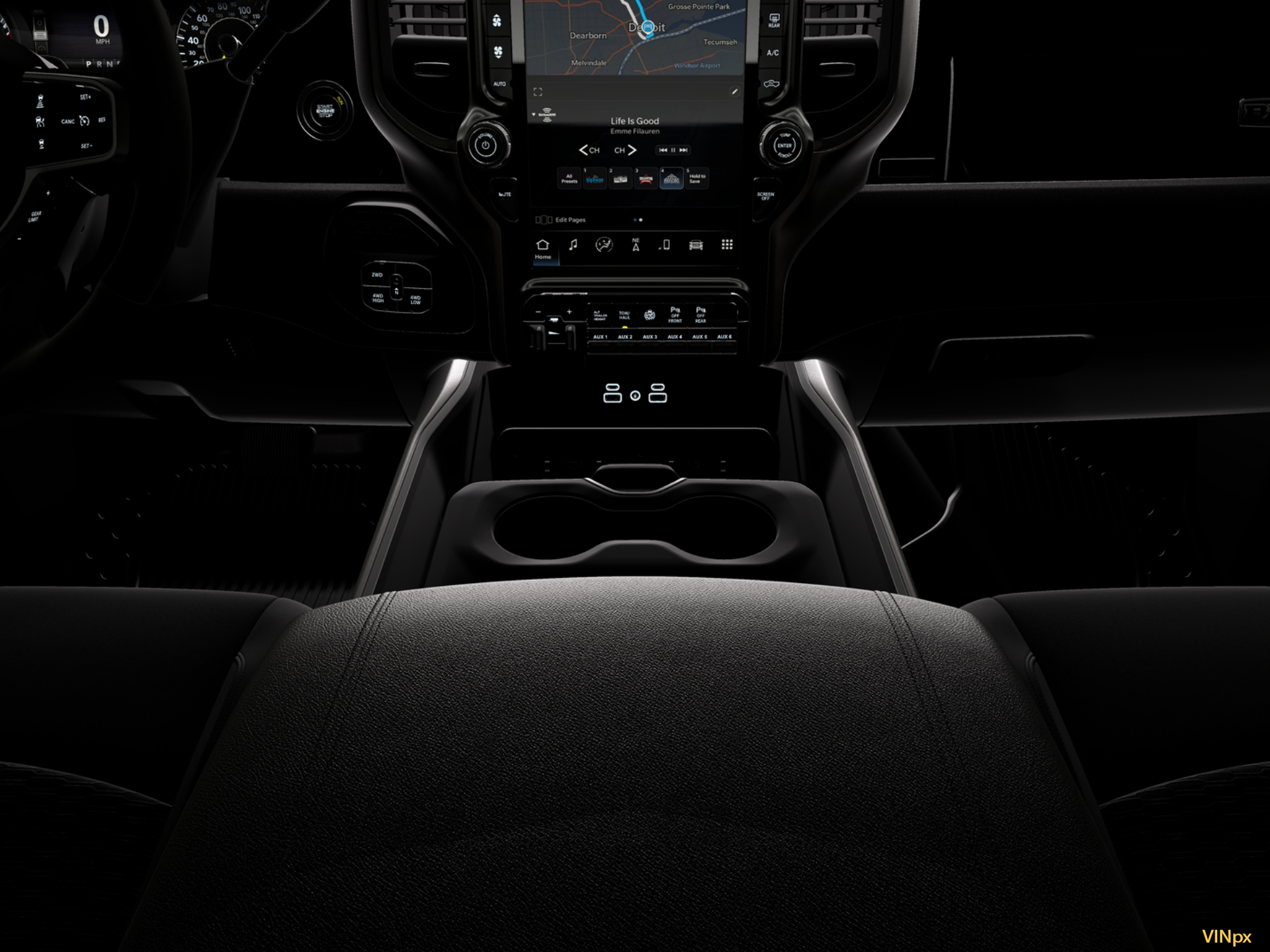 - Radio w/Seek-Scan, Clock, Speed Compensated Volume Control, Aux Audio Input Jack, Voice Activation, Radio Data System and Uconnect External Memory Control